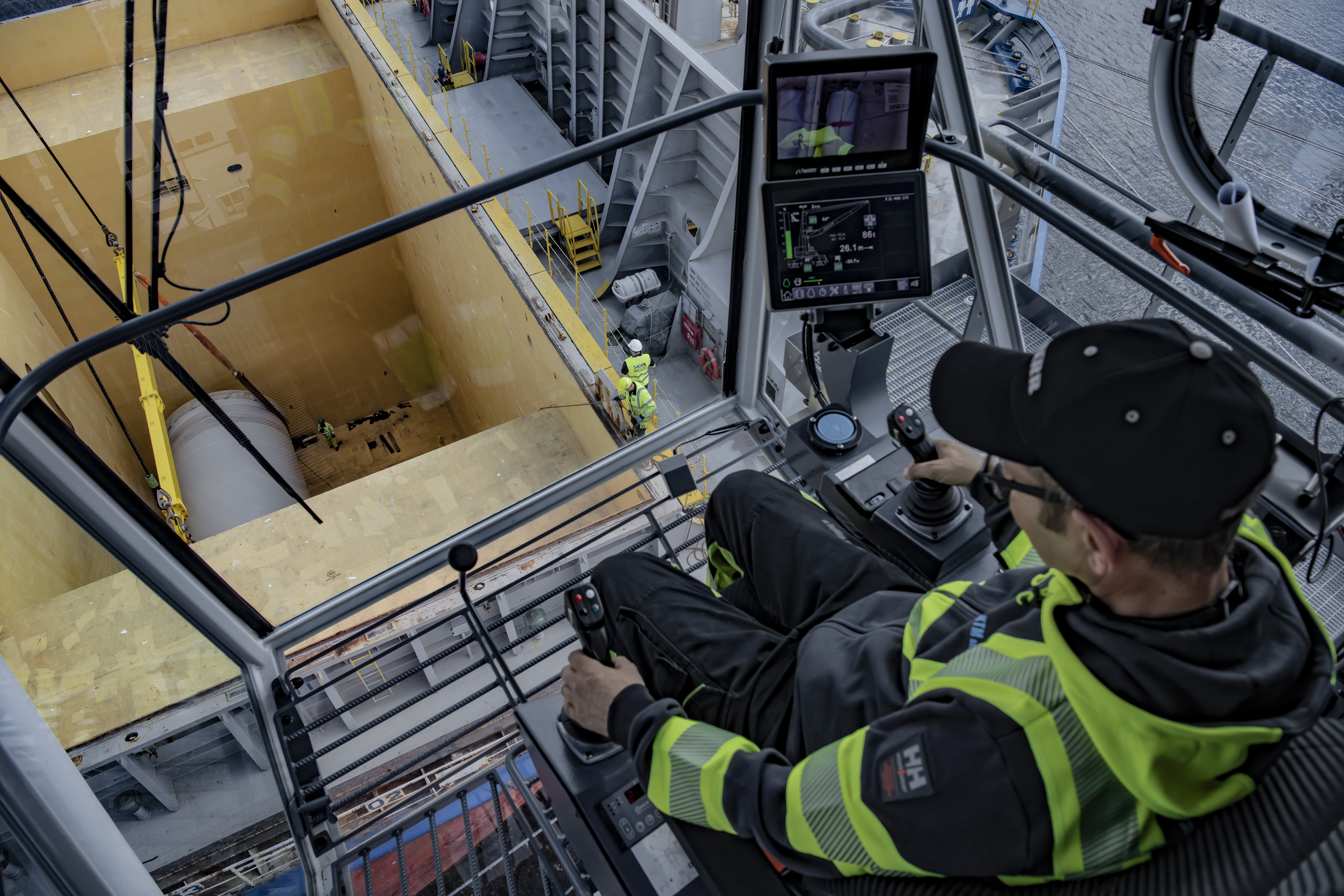 The crane can be powered by electricity, and it is supplied with extra insulation for further noise cancellation. The upgrades on the crane are in accordance with Intelliport, Karmsund Port’s concept to strive for increased efficiency, new technology and more sustainable solutions in everything we do. In an hour on electricity vs diesel, CO2 emissions are cut by as much as 52 kg.